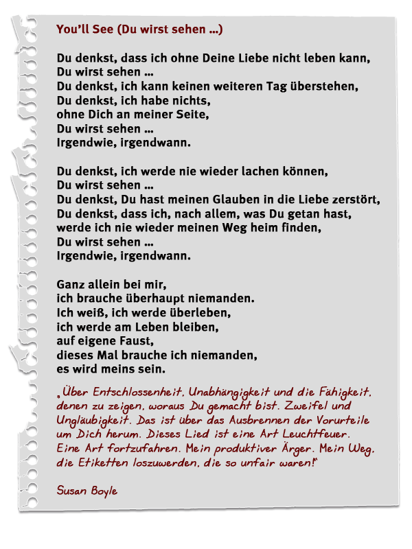 Der übersetzte Liedtext von "You'll See" und ihre Notizen dazu (klicken zum Vergrößern)