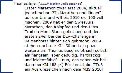 für jeden der vielen Teilnehmer hat Jens eine kleine, individuelle „Hymne“ geschrieben, eine wohlwollende Vorstellung, damit die Webseiten-Besucher wissen, was die einzelnen TorTOURisten so gelaufen haben und was sie noch vorhaben.