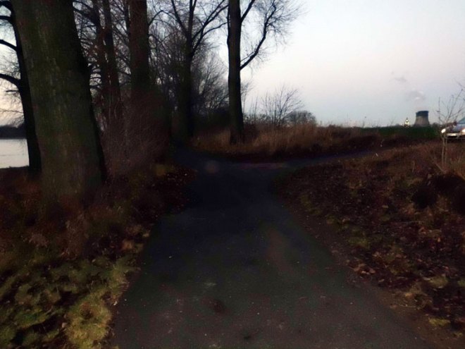 Die „KÖLNPFAD“-Läufer müssen also hinter Köln-Rodenkirchen noch nicht nach rechts abbiegen, sondern weiter dem Radweg folgen, ganz genau bis zu diesem Zeichen: