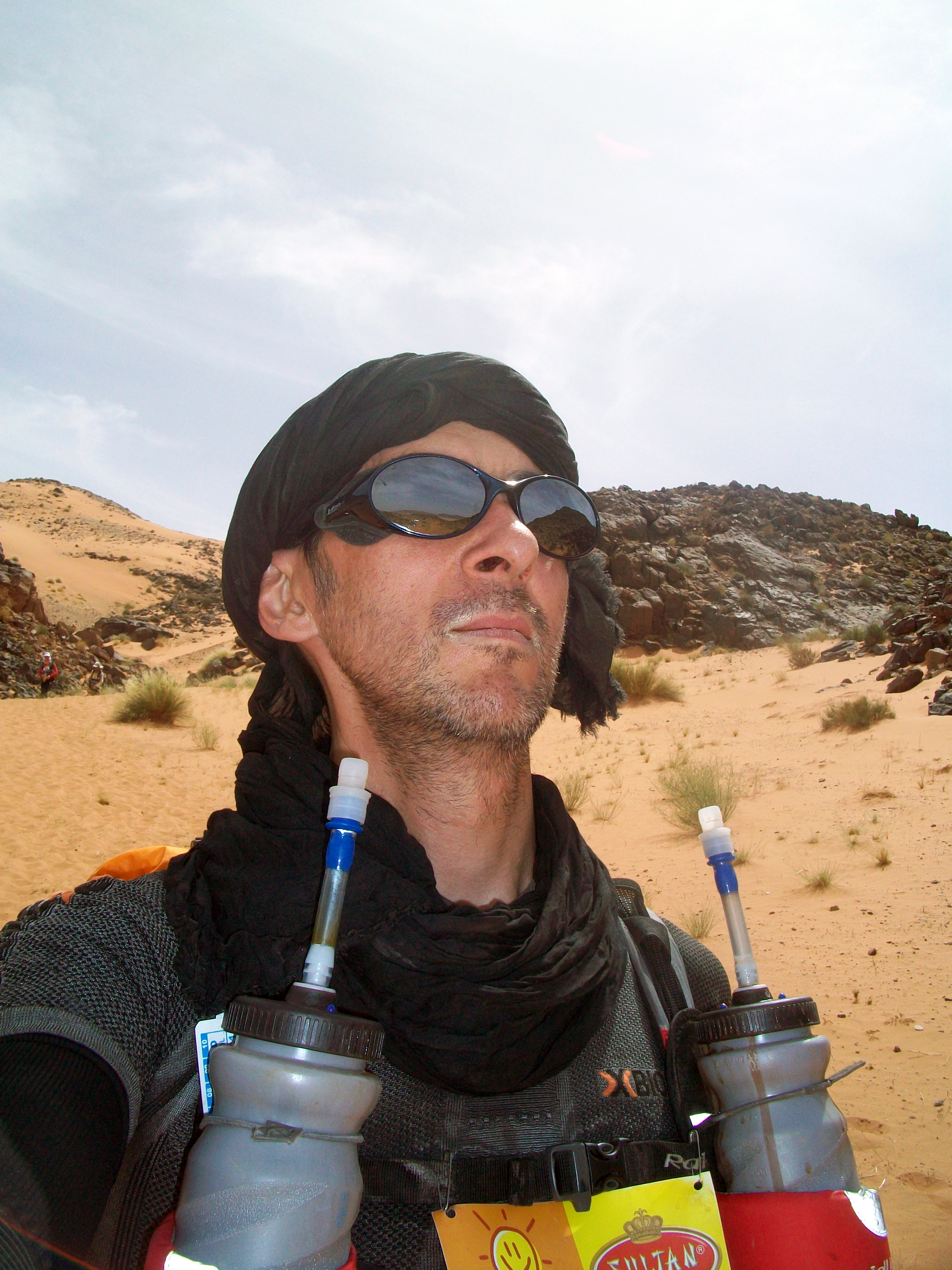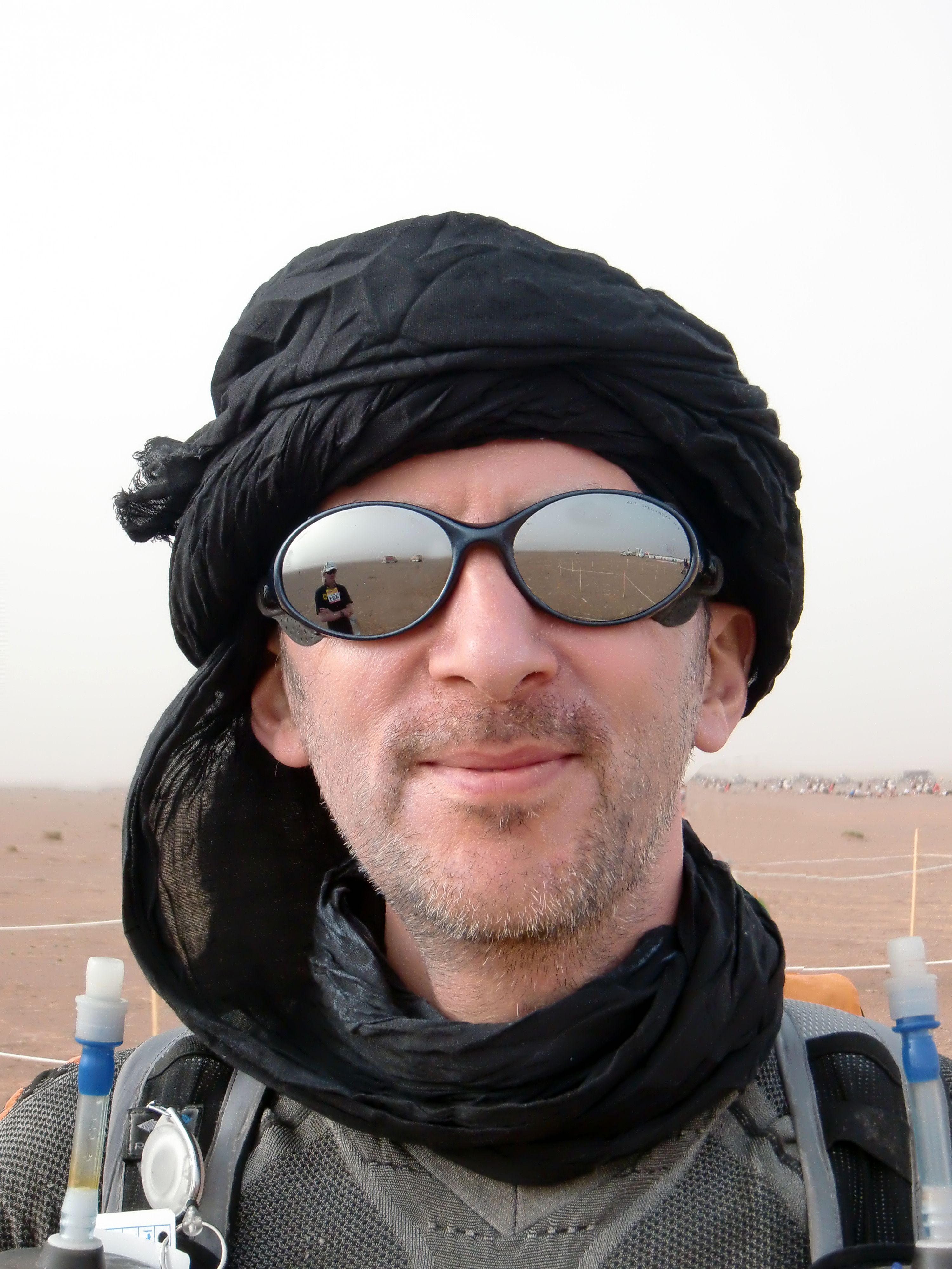 Natürlich war meine Sorge, hier eine riskante Entscheidung getroffen zu haben und am Ende der einzige Marathon des Sables – Läufer zu sein, der sich für diese Lösung entschieden hat. Aber weit gefehlt: ich war erstaunt, wie viele Läuferinnen und Läufer sich ähnlich wie ich entschieden haben, wenngleich die gewählten Farben oft anders waren als die von mir gewählten dunklen Farben. Aber als, wie die Farb- und Stilberatung sagen würde, „Wintertyp“ muss ich ja viel schwarz tragen. Das tue ich ja auch im zivilen Leben. Schwarz oder klare, kräftige Farben.