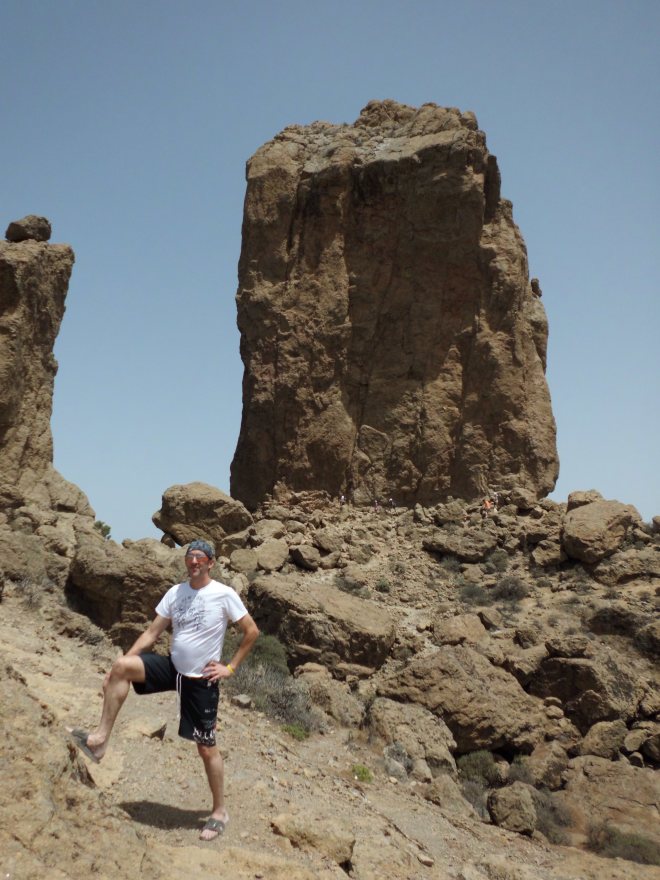 Aber ich sah hinüber zum Roque Nublo, dem Wahrzeichen der Insel, dorthin, wo wir im März 2012 noch den kleinen Loop gelaufen sind und die Kletterer, die sich diesen Riesenfelsen zu besteigen vorgenommen haben, mit neidvollen Blicken beobachtet haben. Irgendwo zwischen diesem Kletterfelsen und der Inselhöhenspitze lag auch die Partie, wo wir nur dank der gespannten Fixseile weiter in die Höhe kamen.