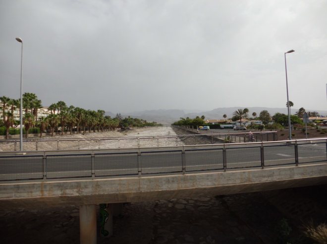Wie im März war der Fluss trocken, die Luft aber war viel heißer als damals. Und wenn ich in der Nacht im März überhaupt nicht realisiert habe, dass neben dem Strand die wunderschönen und gigantischen Dünen von Playa des Inglés liegen und wie manche Gegend, die wir im Dunklen durchstreift haben, im Hellen aussieht, dann konnte ich das alles in diesem Urlaub nachholen.
