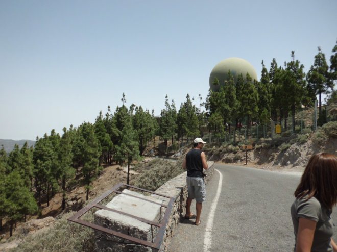 Die große grüne Kugel auf der Bergspitze, mutmaßlich zur Beobachtung der Sterne gebaut, gehört zu einer militärischen Anlage, das wussten wir Läufer. Dass der Zugang dorthin aber unmöglich war, wussten wir nicht. Aber wir wussten auch vieles andere nicht von diesem Berg, dem Pico de las Nieves. Zum Beispiel hat uns niemand von den Schneegruben (spanisch Horadada – „Loch“) erzählt. Eine davon haben wir heute besucht. Sie war riesig und wir dachten, dass man, wenn man dort hinein fallen würde, niemals wieder ohne fremde Hilfe herauskommen könnte. Aber ein Sturz in diese Grube würde man wahrscheinlich sowieso nicht überleben, in diesem Fall ist die Sorge um das heraus klettern aus der Grube eher nebensächlich. Da gäbe es dann Menschen, die darauf spezialisiert wären. Aber das wäre Dir dann auch egal.