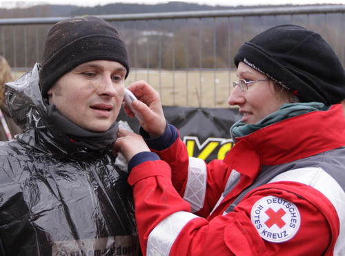 Ganz zum Schluss, nachdem ich erst die hart erarbeitete „Medal of Honor“ erhalten und dann ein Plastiktüte über den Kopf gestülpt bekommen habe, musste ich stoppen und eine nette Lady vom Roten Kreuz schob mir ein Thermometer ins linke Ohr, um meine Körpertemperatur zu messen. Es waren 33,6 Grad – und das war durchaus normal nach diesen Strapazen. Auf welche Temperaturen die Kollegen heruntergekommen waren, die erst zum Ende der Veranstaltung eintrudelten, will ich gar nicht wissen.