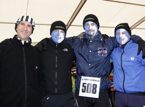 Später kamen dann mein TAR– und MdS– Laufkumpel Heiko Bahnmüller, der gleich mit einer ganzen Truppe seiner Luftwaffeneinheit erschienen ist, Bernie Conradt und seine hochschwangere Frau Sabine, der auch mit zwei Freunden da war, mein Lieblingsfotograf Klaus Duwe, den ich nicht erst seit dem fantastischen Foto im Ziel des UTMB in meine Abendgebete einschließe und ich hatte etliche nette Gespräche mit Läufern, die mir einiges über deren Laufleben erzählt haben.