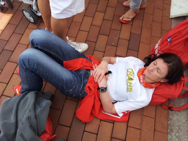 In Teror gab es dann Pasta. Vor dem Berg wären sie zwar sinnvoller gewesen, aber besser spät, als gar nicht. Ich traf Kurt Süsser dort und fragte ihn, wann er mich überholt hätte. Aber er hatte das nicht. Er verließ das Rennen schon vor dem Berg, vielleicht, weil er einfach zu wenig getrunken hatte. Schade für ihn, aber die Hitze ist einfach nicht seine Stärke.