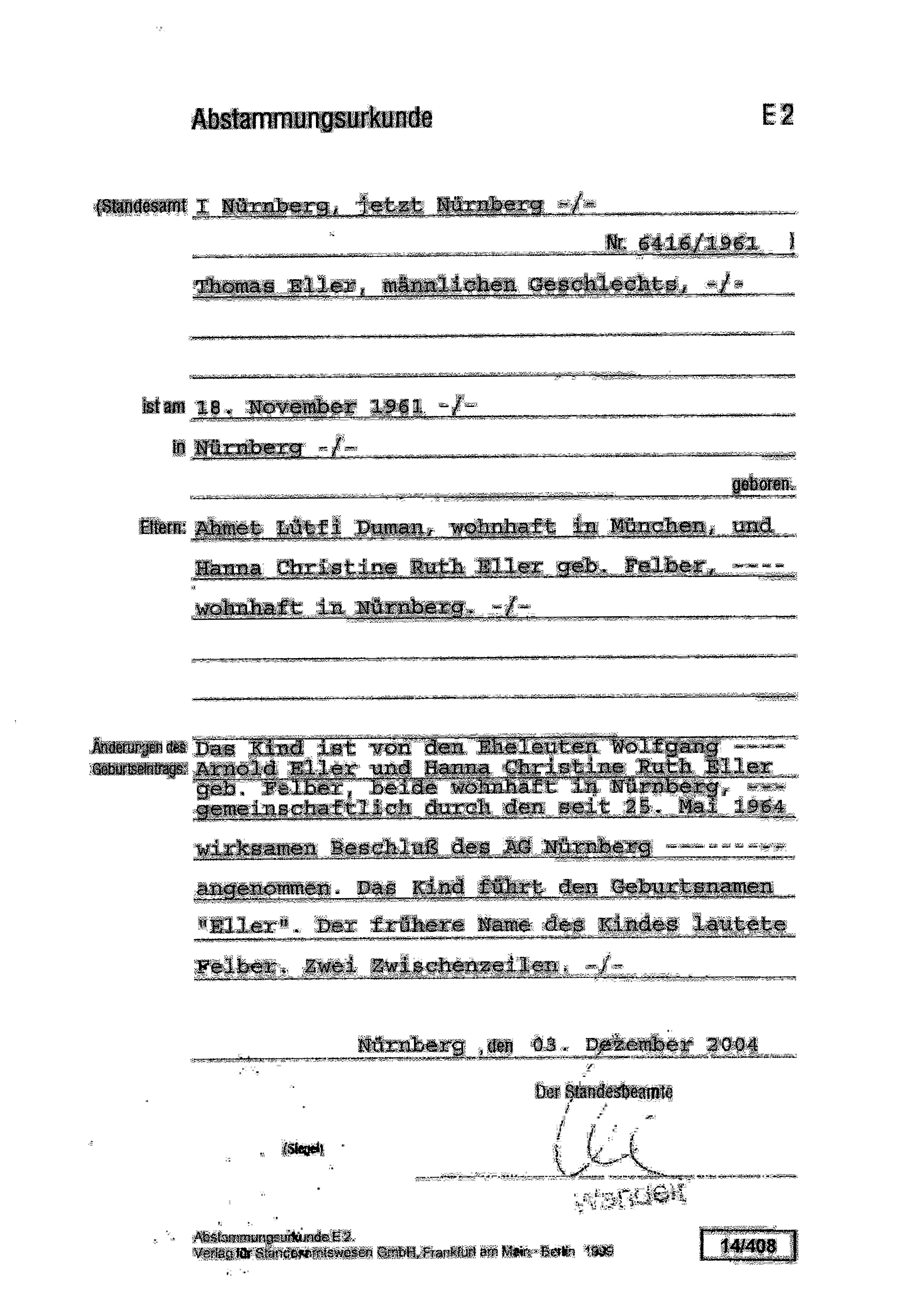 Dafür hatte ich seither einen neuen Namen im Leben, den meines leiblichen Vaters, Ahmet Lütfi Duman